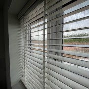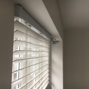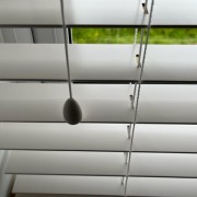 Operation is with a single handle at the bottom to move the blind up and down (under spring tension) and an acrylic wound to tilt the blinds. Any cords to support the operation of the blind are hidden within the blind frame.